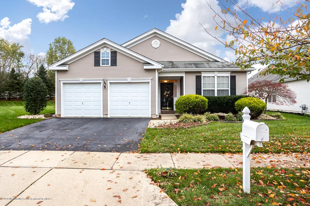 Welcome home to this gorgeous ranch located in the desirable Four Seasons at Upper Freehold! Situated on a cul-de-sac, this Sanibel model offers many upgrades, including porcelain floors in the foyer, dining room, kitchen, sun-room, bathrooms and hallways, recessed lighting and crown molding throughout, and a formal living and dining room. The kitchen includes granite countertops, upgraded stainless steel appliances, 2 pantry closets, counter seating, a built-in desk and adjacent breakfast area with a bay window. The family room includes custom built-in cherry cabinets on either side of the gas fireplace, a ceiling fan and columns leading into an extended sun-room with a vaulted ceiling and access to the patio. An extended master bedroom has a large walk-in closet with custom organizers and an en suite with a double sink vanity, Jacuzzi tub and separate shower stall. There are two additional bedrooms, each including closet organizers, and a shared hall bathroom. Some additional features of this beautiful home are a spacious laundry room, new York furnace, a walk-up, carpeted attic storage area located over the 2 car garage with floor tiles, additional attic storage accessible via pull-down stairs, an alarm system and professional landscaping. Enjoy all the amenities an adult gated 55+ community has to offer. This home is conveniently located near I-95, NJ Turnpike, Routes 130 and 33 and an hour from NY, Philadelphia and the Jersey Shore.